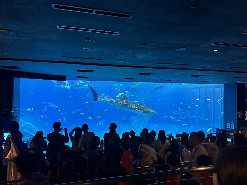 巨大な黒潮の海の水槽が目に入った瞬間、生徒たちから思わず「すごい!」という声が上がりました。悠々と泳ぐジンベエザメ、マンタの迫力ある動きはやはり圧巻。水槽前で友達と写真を撮ったり、静かに生き物を眺めたり、それぞれが自分のペースで楽しんでいました。