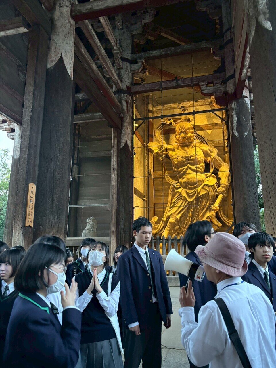 歴史ある建物と「大仏」の迫力に目を奪われながら、ガイドさんの話に耳を傾けていました。授業で学んだことより深い知識を得ることができたように思います。