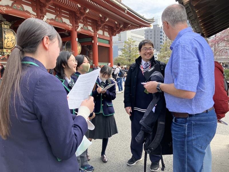 3月18日(水)に浅草において、中学1年生が外国人の方々に英語によるインタビューを行いました。