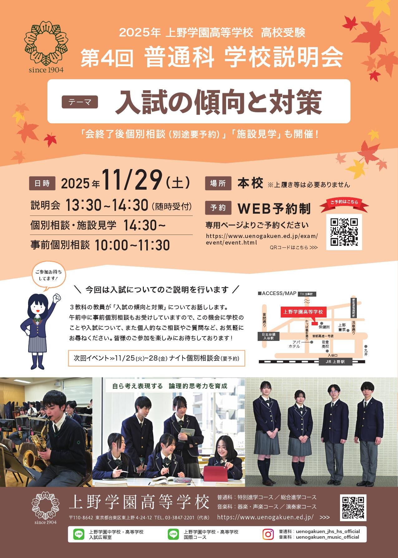 【高校普通科】11/29(土)学校説明会のお知らせ