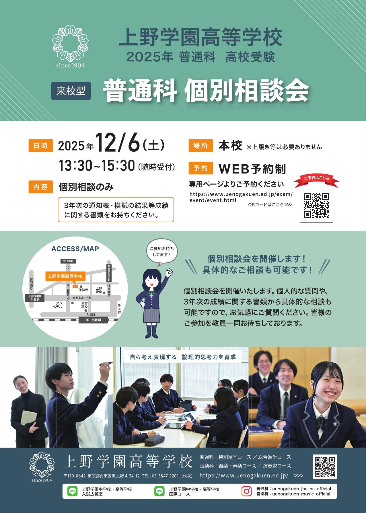 【高校普通科】12/6(土)個別相談会のお知らせ
